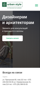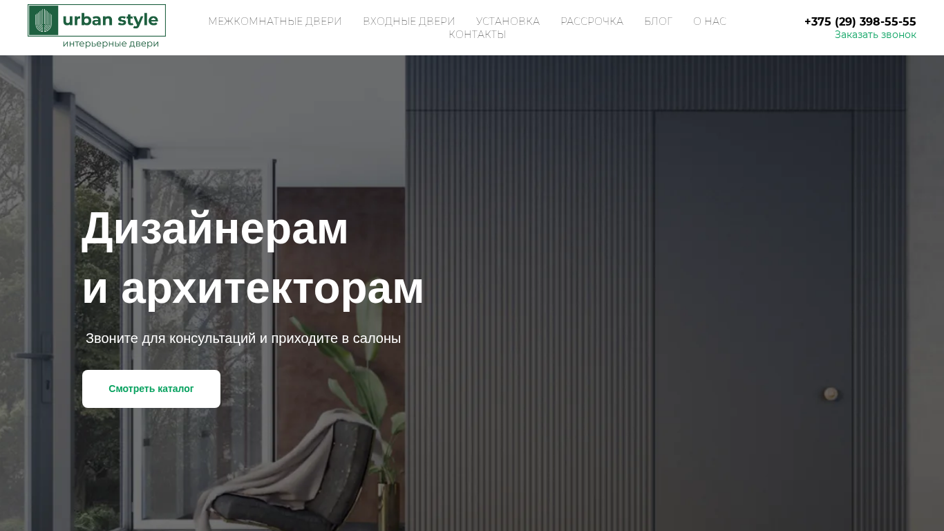Этот онлайн-ресурс — это сайт для дизайнеров и архитекторов компании UrbanStyle. Название сайта "Дизайнерам и архитекторам" (Designers and architects), а описание указывает на то, что он предназначен для клиентов UrbanStyle. Сайт содержит ключевые слова: двери, серии, 375, UrbanStyle, различные телефонные номера. На первом месте по популярности находятся "двери", "серии", 375 и снова "UrbanStyle". URL сайта — design.urbanstyle.by. Содержание сайта включает информацию о дверях, заказе дверей и контактах компании. Сайт предлагает телефонные номера для связи, а также возможность оставить заявку на звонок или заказать каталог. Также указаны адрес и часы работы компании. UrbanStyle сотрудничает с дизайнерами, студиями дизайна и архитекторами.
