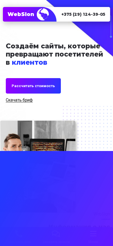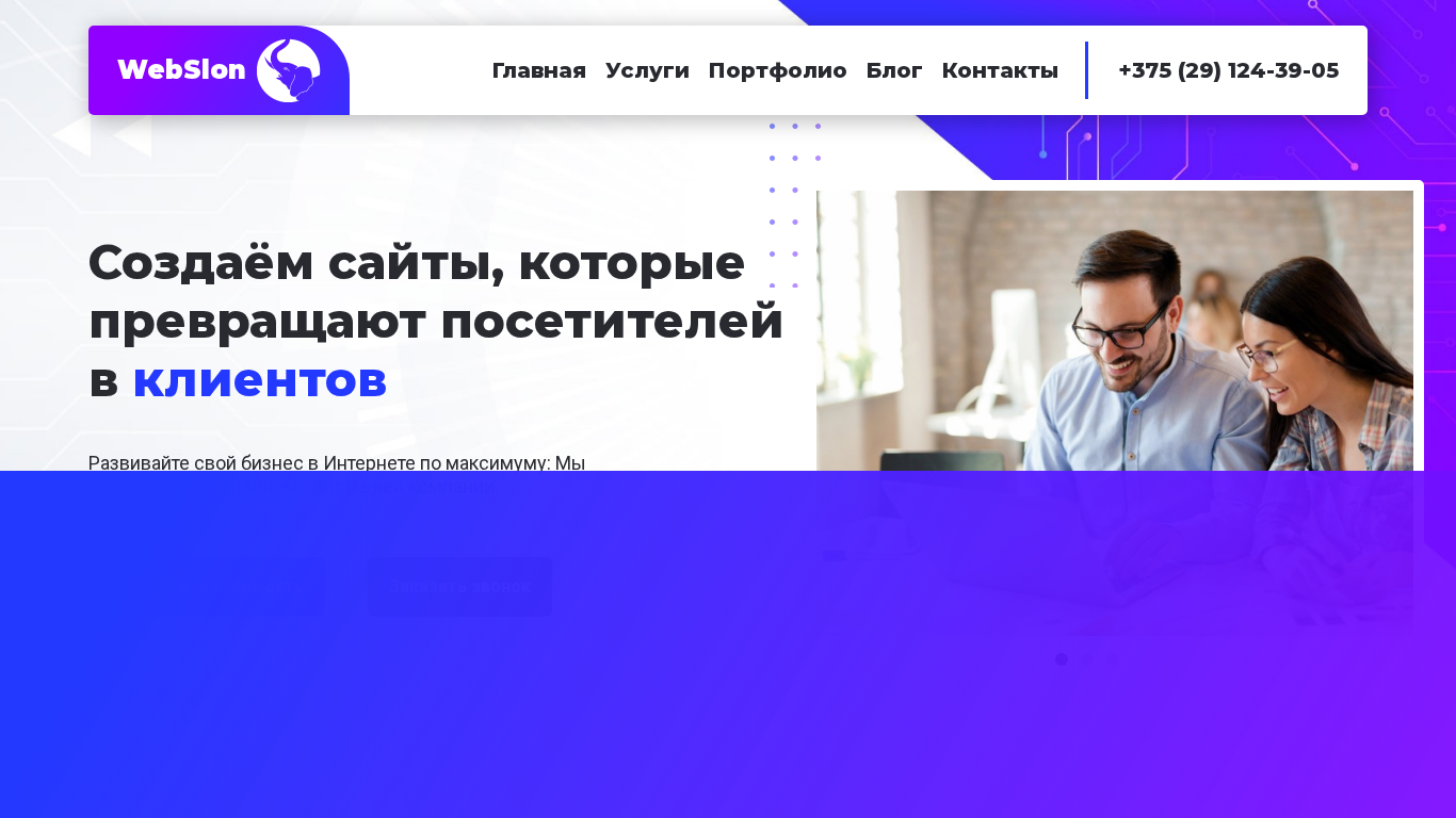 Проект веб-сайта new.webslon.by под названием "WebSlon" представляет собой белорусский ресурс, предлагающий услуги по разработке и продвижению сайтов. Описание сайта акцентирует внимание на создании и улучшении бизнес-интернет-проектов, подчеркивая их потенциал в конвертации посетителей в клиентов. WebSlon гордится предоставлением высококачественных, индивидуализированных и экономичных решений, обеспечивая тем самым достижение бизнес-целей и преодоление вызовов своих клиентов. Компания предлагает постоянную поддержку для обновления сайтов, их безопасности и функциональности. Сайт характеризуется профессиональным дизайном, адаптированным под мобильные устройства, что способствует улучшению взаимодействия пользователя с ресурсом на различных платформах. Услуги WebSlon включают создание и разработку сайтов, использование модульной платформы для обеспечения гибкости, а также оптимизацию поисковой системы (SEO) для повышения видимости сайта в поисковых системах.
