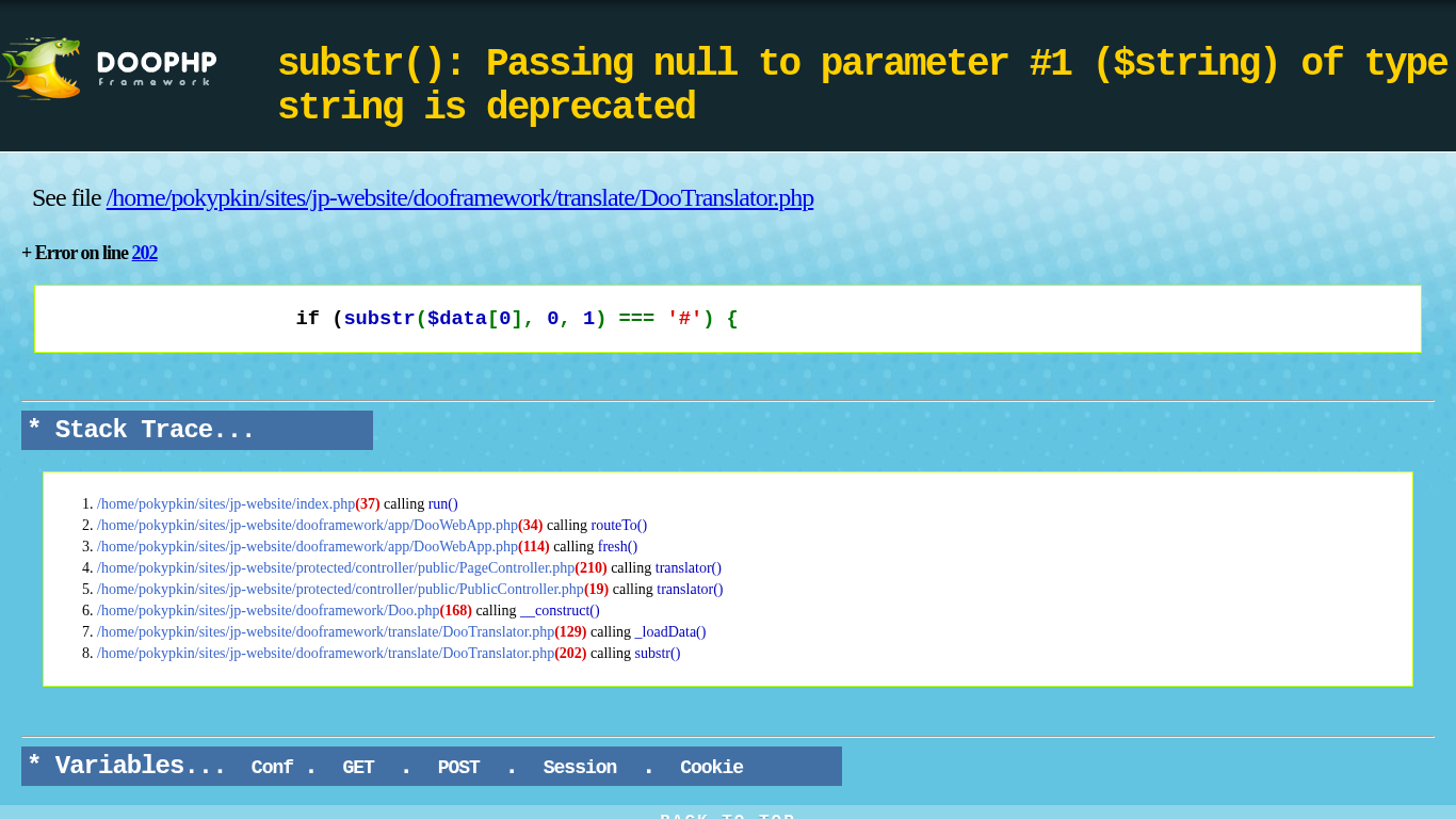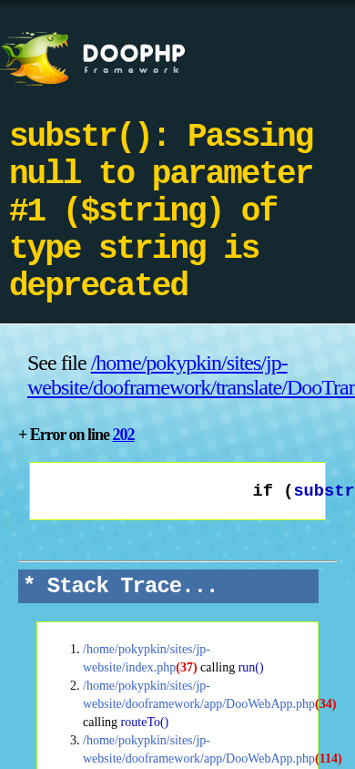 | Название / Заголовок | DooPHP Diagnostics - substr(): Passing null to parameter #1 ($string) of type string is deprecated |
