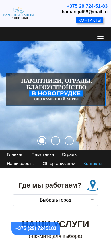 | Адрес | Контакты, +375 (29) 7245183, НАШИ КОНТАКТЫ, ООО "КАМЕННЫЙ АНГЕЛ", kamangel66@mail.ru, Адрес: г. Барановичи, ул. Фроленкова, 40 |