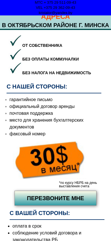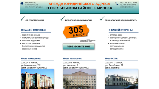 Название / ЗаголовокАренда юридического адреса в Минске без размещения от собственника
