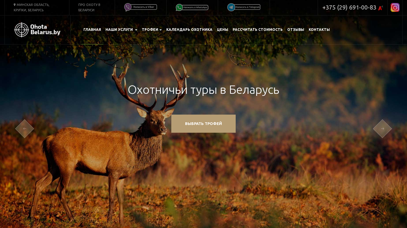 | SEO-описание | Организуем охоту в Беларуси, соответствующую Вашим индивидуальным требованиям. Поможем с оформлением документов, проживанием, решим все организационные вопросы. Пишите в Veber/Telegram/WhatsApp ☎ +375 (29) 691-00-83. |