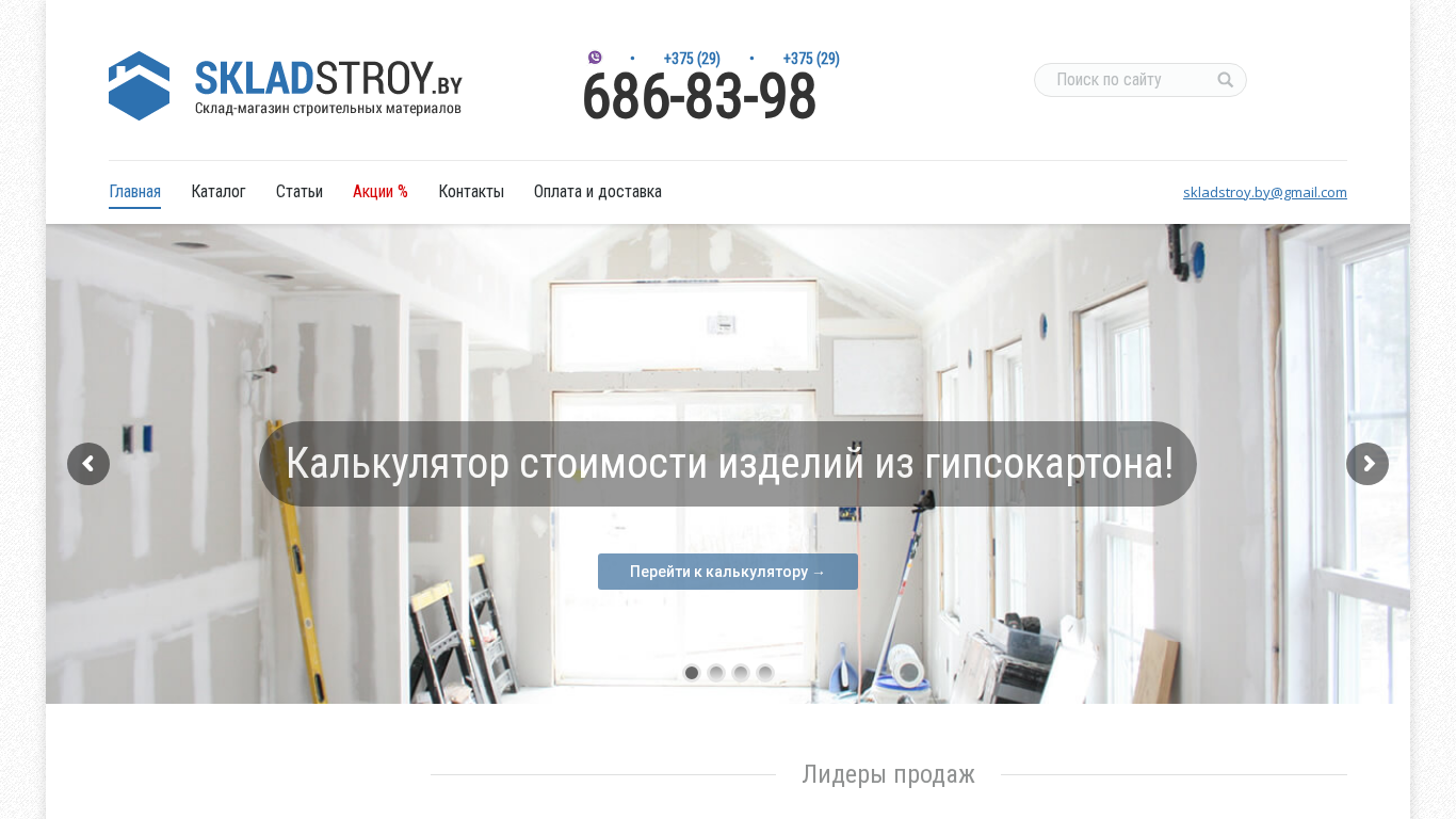 | SEO-описание | Магазин строительных материалов SkladStroy.by предлагает гипсокартон, строительные смеси, люки-невидимки и другие стройматериалы. Доставка. +375 29 394-11-44 |