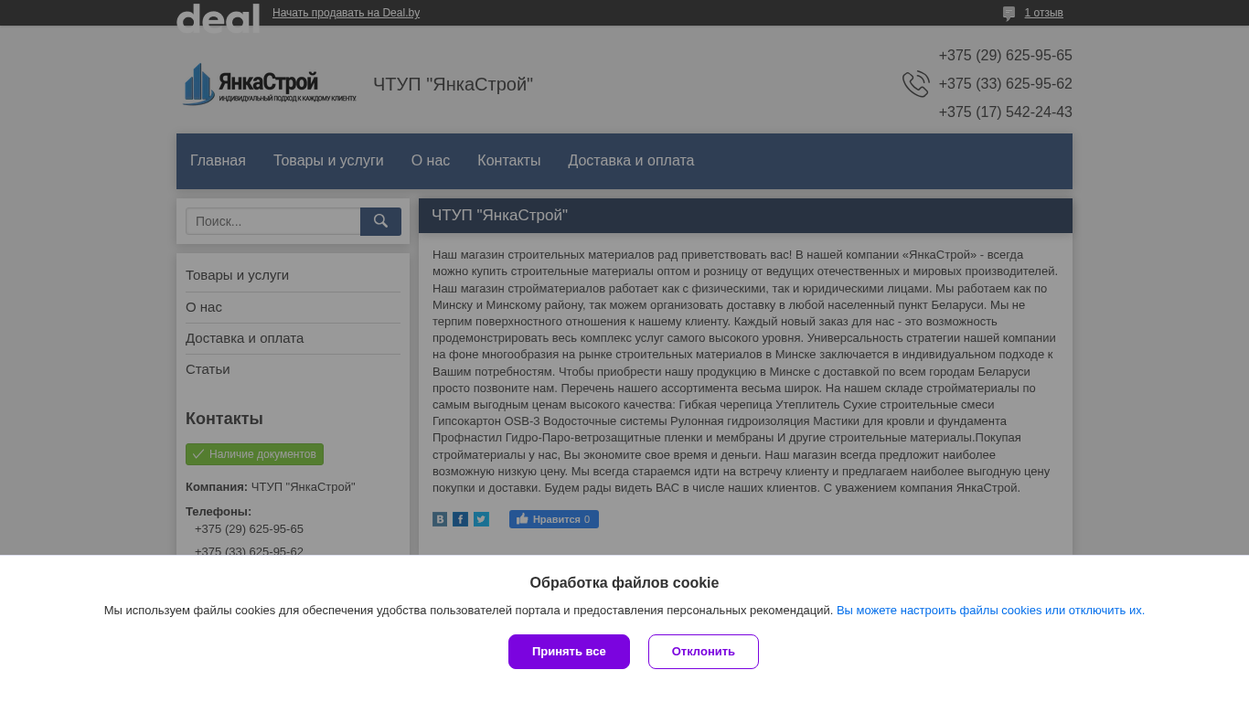 | SEO-описание | Контактная информация, товары и услуги компании "ЧТУП "ЯнкаСтрой" " |