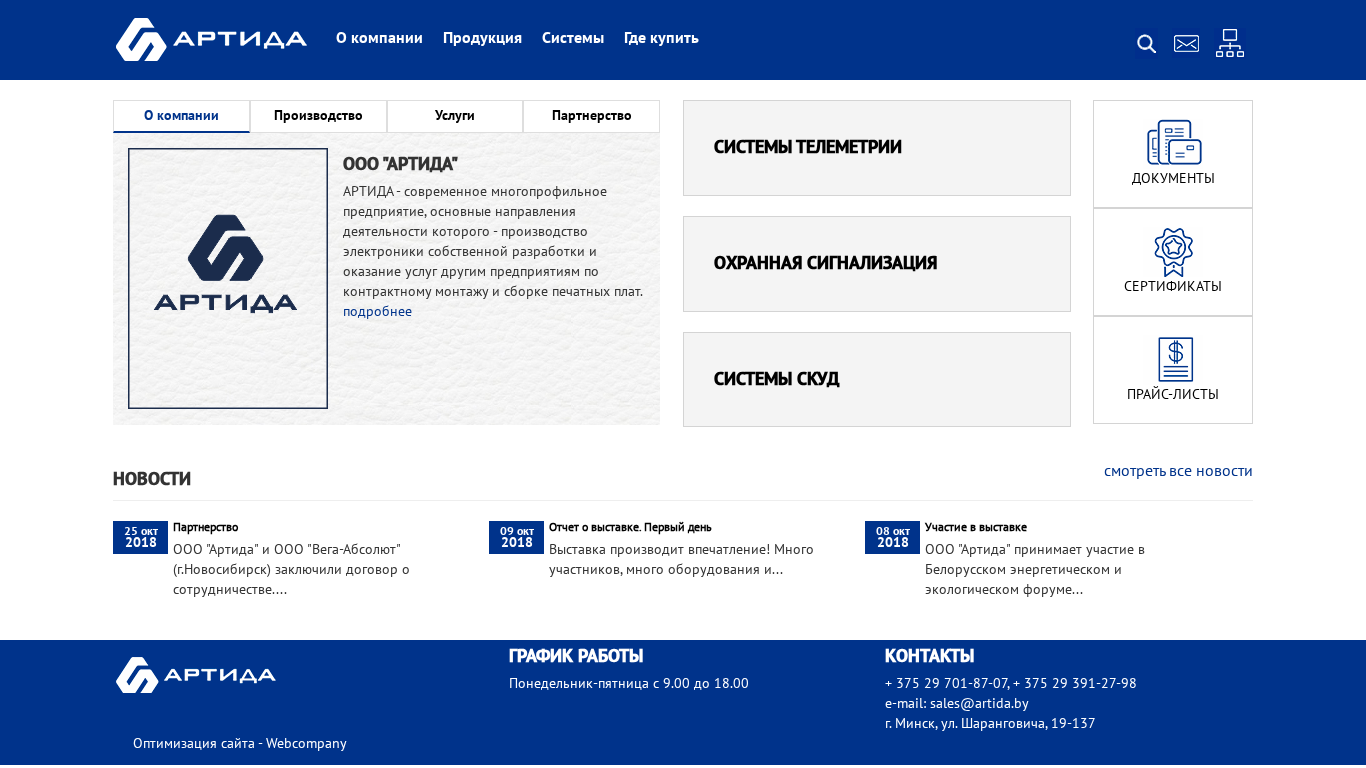| Название / Заголовок | Разработка и производство электронных устройств и систем безопасности в Беларуси - АРТИДА |