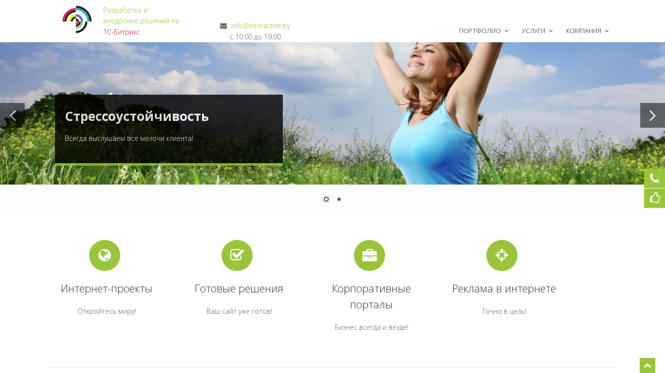 | Ключевые слова | INTERACTIVE.BY web студия сайт разработка хостинг продвижение фирменный стиль 1С-битрикс битрикс сопровождение оптимизация хостинг сопровождение поддержка |