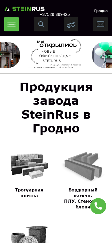 | SEO-описание | Компания SteinRus – это крупный продавец тротуарной плитки и элементов мощения. Купить нашу продукцию в г. Гродно можно у официальных дилеров. Рады предложить вам богатый выбор брусчатки по доступным ценам. |