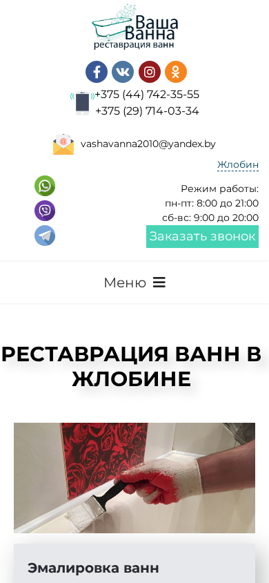 | Название / Заголовок | Реставрация ванн в Жлобине: эмалировка, наливная ванна, акрил |