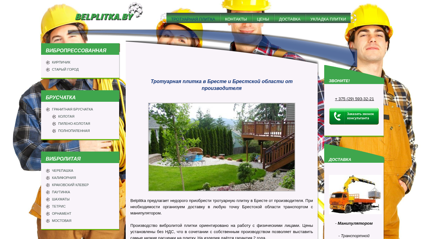 | SEO-описание | Тротуарная плитка в Бресте и Брестской области от производителя недорого. Большой выбор видов плитки и цветов. Доставка транспортом с манипулятором. Укладка |