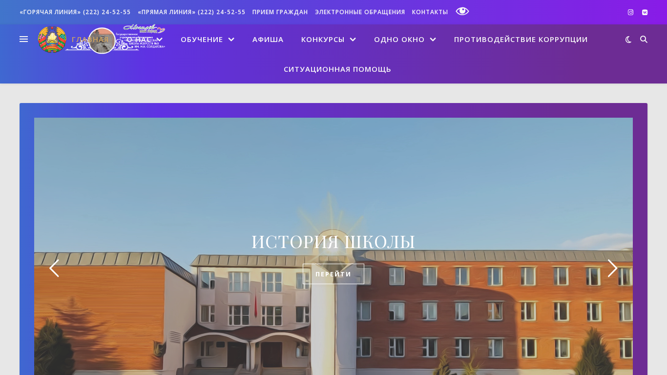 | AI-анализ | The website is for the State Educational Institution "Mogilev Children's School of Arts No.3 named after M.N. Soldatov". It provides information on the school's sections, collectives, creative achievements, scholarships, courses, administrative procedures, and anti-corruption measures. The school offers education in various artistic fields, with details on fees, paid services, and admissions. The website includes a section on legal support and school history. Contact information, including phone numbers and email, is provided, along with the school's operating hours and social media links. Currently, the website features news about a republican cleanup day in Belarus. |