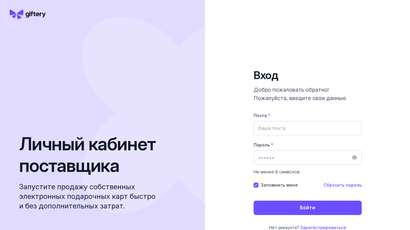 | SEO-лексика | личный кабинет поставщика пароль запустите продажу собственных электронных подарочных карт быстро без дополнительных затрат вход добро пожаловать обратно пожалуйста введите |