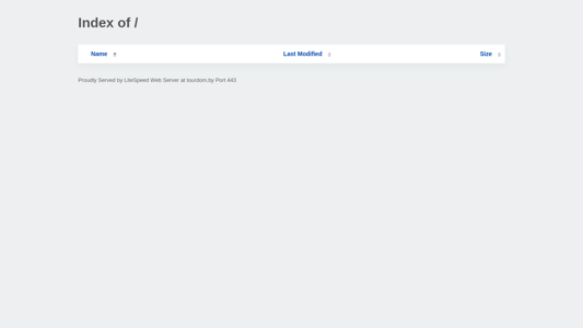 | AI-анализ | The website tourdom.by is a directory listing featuring files and their respective details such as name, last modified date, size, and served by the LiteSpeed Web Server. The title and description of the website are blank, and there are no provided keywords. The top words in the data suggest that the index page of the website is a standard FTP-style directory listing. |