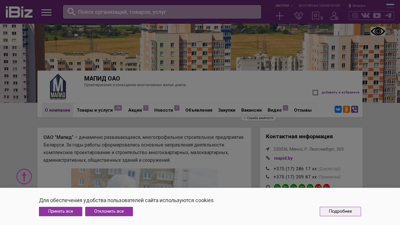| Название / Заголовок | МАПИД ОАО - Проектирование и возведение многоэтажных жилых домов.. 220036, Минск, , Р. Люксембург, 205 |