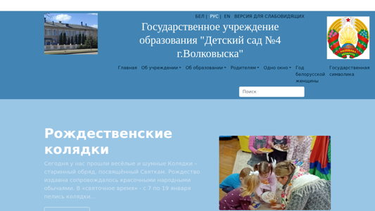 | Название / Заголовок | Главная - Государственное учреждение образования "Детский сад №4 г.Волковыска" |