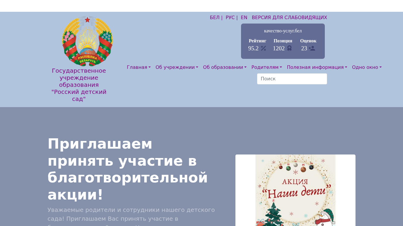 | Название / Заголовок | Главная - Государственное учреждение образования "Росский детский сад" |