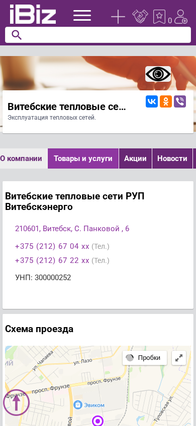 | Название / Заголовок | Витебские тепловые сети РУП Витебскэнерго - Эксплуатация тепловых сетей.. 210601, Витебск, , С. Панковой , 6 |