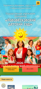 | Адрес | Электронное обращение, Телефонный справочник (горячие линии), Контакты, (c) ГУО «Нововёсковский детский сад», ул. Молодёжная, 50А |