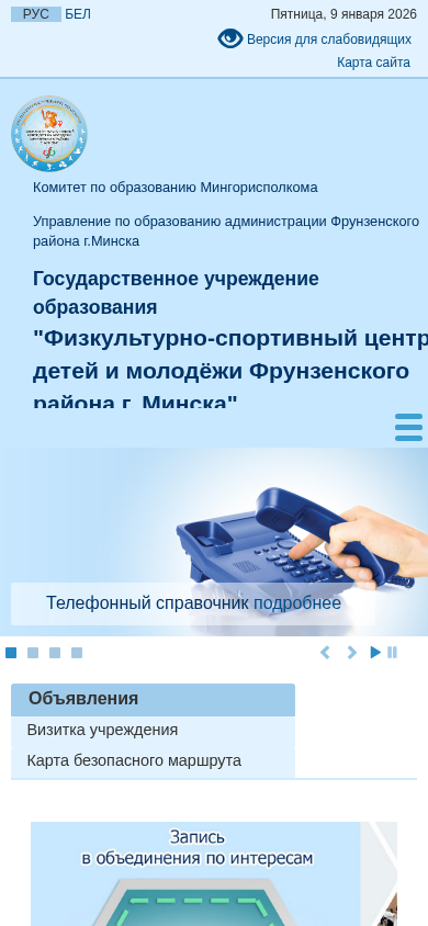 | Название / Заголовок | Физкультурно-спортивный центр детей и молодёжи Фрунзенского района г. Минска |
