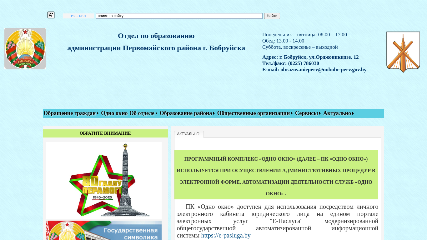 | Название / Заголовок | © Отдел по образованию администрации Первомайского района г.Бобруйска |