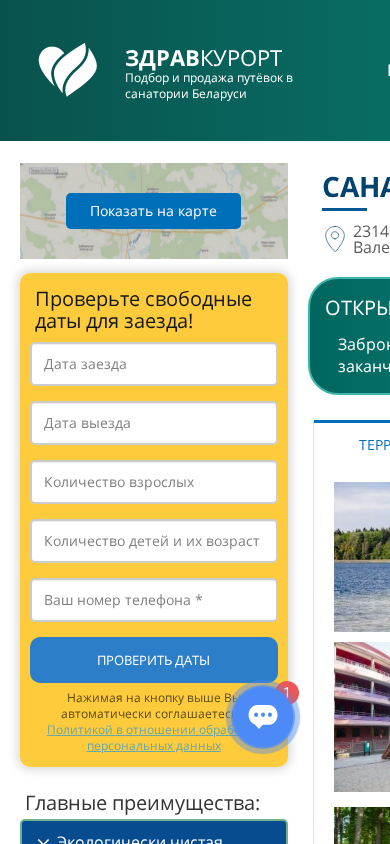 | AI-анализ | Этот онлайн-ресурс посвящен белорусскому санаторию Свиатиз, расположенному на берегу драгоценного Беларуси, озера Свиатиз. Веб-сайт предлагает услуги бронирования для санатория, который специализируется на лечении респираторных, кардиоваскулярных и остеохондральных заболеваний, используя 70 типов терапевтических процедур. Пользователи могут проверить наличие номеров по их предпочтительным датам. Сайт также предоставляет контактную информацию для справок, предлагает карту местоположения и включает в себя буфет на территории для удобства посетителей. Санаторий расположен в смешанном хвойно-широколиственном лесу, рядом с озером, с коротким расстоянием до воды. Лечебная грязь, используемая в лечении, получается из озера Дикое в Дятловском районе Гродненской области (пресной). |