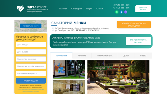 | Название / Заголовок | Ченки 💙 - современный санаторий на берегу живописной реки |