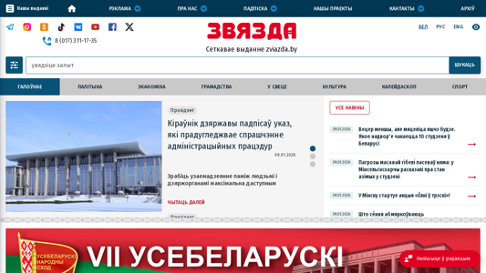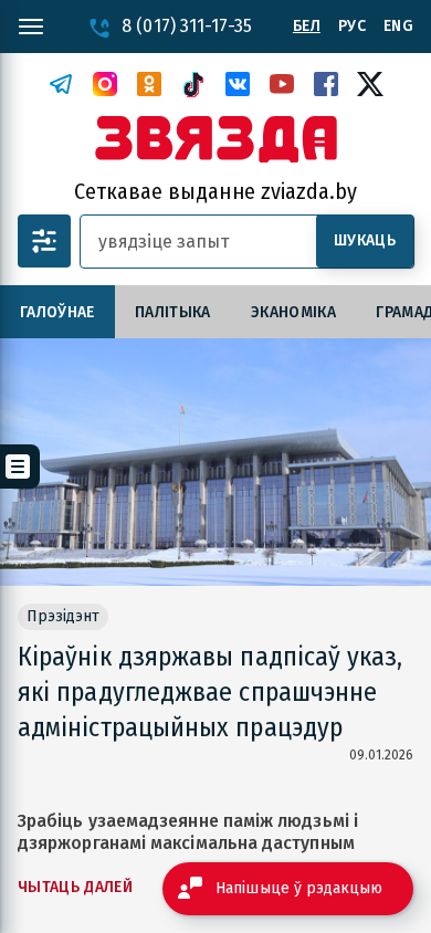 | Ключевые слова | Газета Звязда навіны апошнiя навіны навіны Беларусі беларускія навіны навіны палітыкі прэзідэнт Лукашэнка навіны эканомiкi спорт культура грамадства навіны у свеце сеткавае выданне "Звязда |