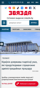 | SEO-описание | Апошнiя актуальныя навіны сёння - Сеткавае выданне "Звязда". Даведвайцеся першымi пра міжнародныя навіны і навіны Беларусі. Навіны эканомікі, палітыкі, культуры, спорту, грамадства, навіны рэгіёнаў, фотанавіны, відэанавіны. |