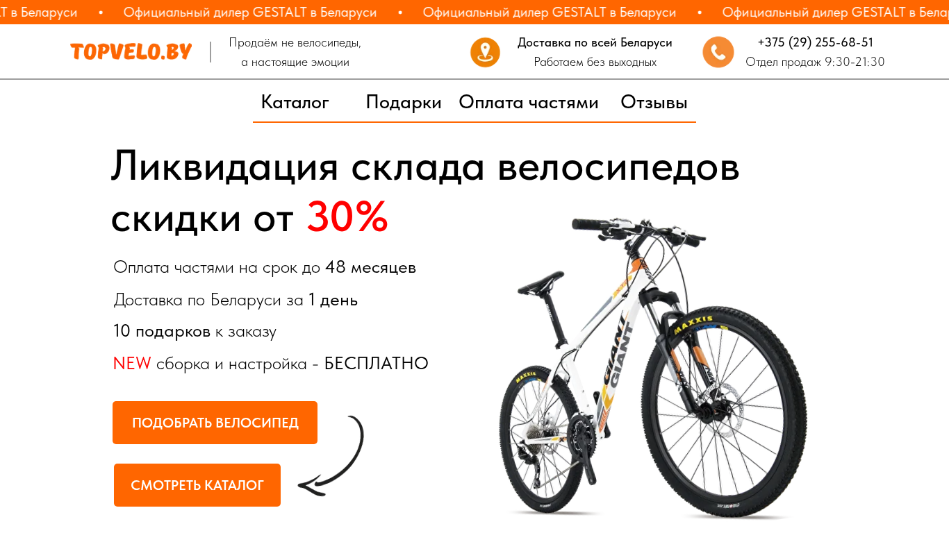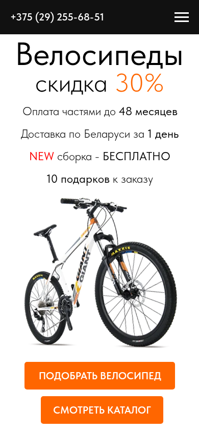 | SEO-описание | Большой выбор велосипед на любой вкус! Отсрочка платежа без первоначального взноса на срок до 48 месяцев! Доставка по всей Беларуси за 1 день. Бесплатный тест-драйв любой модели! |