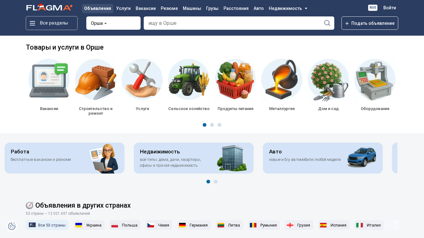 | SEO-описание | ⭐Flagma.by — online каталог товаров и услуг в Орше с возможностью купить оптом и в розницу! Более 2042 магазинов-поставщиков! Возможность доставки в любой регион! |