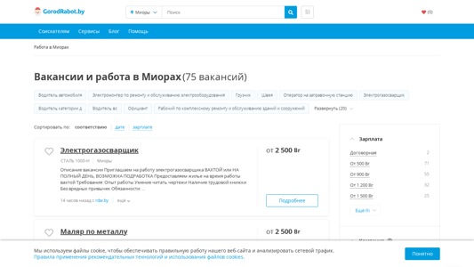 | SEO-описание | Ищете работу в Миорах? На нашем сайте Вы найдете более 75 свежих вакансий от прямых работодателей. Быстрый и удобный поиск вакансий с ГородРабот.бай |