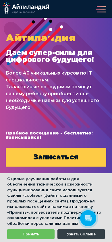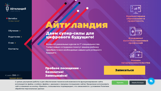 | AI-анализ | Портал vitebk.itlandia.by представляет собой образовательный сайт, предлагающий курсы по информационным технологиям для детей в возрасте от 5 до 14 лет. Главная страница приглашает посетителей зарегистрироваться на бесплатную пробную лекцию и представляет два доступных курса: один для детей в возрасте от 5 до 6 лет, а другой — для детей в возрасте от 6 до 8 лет. Оба курса имеют продолжительность 2,5 года и проводятся раз в неделю. Сайт также упоминает предложение "Level UP" по продвижению образования ребенка в области IT. Домен принадлежит образовательному центру "Айтиландия", расположенному в Витебске, Беларусь. На сайте не предоставляется информация о стоимости, контактных данных или документах, необходимых для регистрации. |