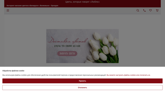 | AI-анализ | Проект "Орхидея-Князева" — это онлайн-магазин цветов, расположенный в Волковыске, Беларусь, предлагающий доставку по Волковысскому району. В магазине представлен широкий ассортимент живых цветов, оригинальные букеты и сладкие композиции из конфет. Профессиональные флористы обеспечивают индивидуальный подход. Для заказа и доставки предоставлены контактные данные, включая телефоны +375 29 589 57 76 и +375 44 579 57 76. Сайт демонстрирует различные букеты цветов, среди которых можно найти букет из белых роз и хризантем за 95 рублей, букет из 9 стеблей роз за 110 рублей, букет розового цвета за 80 рублей, букет номер 11 за 63 рубля. |