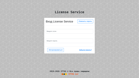 Проект веб-сервиса "Лицензионный сервис" предоставляет пользователям возможность заказать, управлять и просматривать лицензионные соглашения и спецификации для различных продуктов. Сайт включает разделы для "Договоров", 'Заказ Спецификаций' и 'Актов Аудита'. Пользователи могут проверить наличие и количество лицензий на выбранный продукт и контракт, просмотреть и изменить примечания к контракту и спецификациям, а также скачать соответствующие файлы. Сайт также включает разделы для управления учетными записями пользователей, включая возможность смены пароля. Сайт эксплуатируется ITTAS LLC и защищен авторским правом.