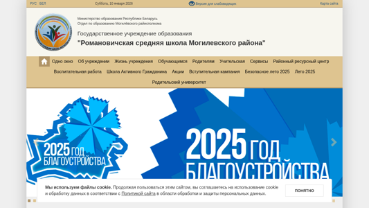 | AI-анализ | The web project "Романовичская средняя школа Могилевского района" (Romanovich Secondary School of Mogilev Region) provides information about the educational institution located in the Mogilev region of Belarus. The site includes details on the school schedule, admission process, and various events. Keywords related to the school year, work, and plans are frequently used. The domain is registered under the .BY extension for Belarus. |