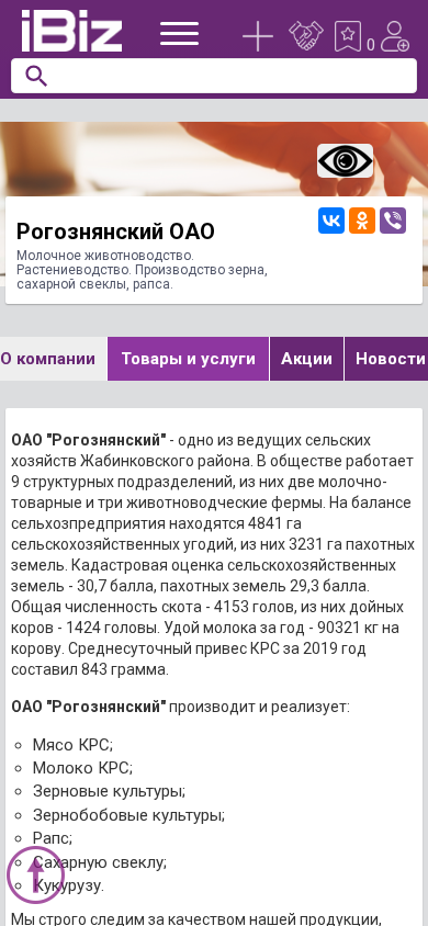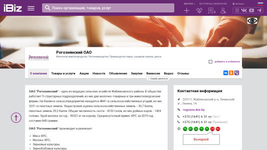 | AI-анализ | The web project "Rogoznyansky OAO - Dairy Farming. Agriculture. Production of grain, sugar beets, rapeseed.." is a Belarusian farming company located in the Leninsky Agricultural Association, Lenina Street, 14, 225111. The company specializes in dairy farming, agriculture, and the production of grain, sugar beets, and rapeseed. The website provides information on the company, its products and services, and contact details. Keywords associated with the website include "services," "375," "phone," "Rogoznyansky OAO," "purchases," "announcements," "rural," "agriculture," "livestock," "without," "lunch," "258," "add," "company," "goods," "none," "c |