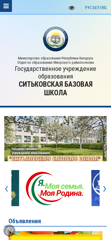 | AI-анализ | This website belongs to the Siтьkovская базовая школа (Sitykovskaya Bazovaia Shkola), a state educational institution located at d.Sitkovo 2, ul.Shkolnaya 9 in the Miorsky district of Belarus. The title and description of the website mention that it provides information and assistance to families, with keywords related to work, help, and the specific addresses 02152, 2025, and 2026. The website appears to be managed by the Ministry of Education of the Republic of Belarus and the Miorsky district executive committee. The structure of the website includes sections on news, visiting card, history and traditions, organization of work, and contact information. The website also mentions a library, museum, and patriotic education for preschoolers. The domain name is registered to the Mi |