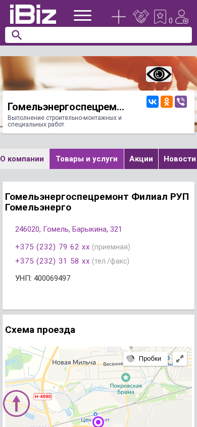 | AI-анализ | Проект веб-сайта "Гомельэнергоспецремонт Филиал РУП Гомельэнерго" направлен на предоставление услуг по строительству и монтажу, а также специализированных работ. Расположенный по адресу 246020, Гомель, Барыкина, 321, компания предлагает свои услуги под названием "Гомельэнергоспецремонт Филиал РУП Гомельэнерго". В предоставленных контактных данных присутствуют телефонные номера +375 (232) 79 62 xx (приемная) и +375 (232) 31 58 xx (телефон/факс). НИПП компании - 400069497. На сайте также размещена карта для удобства навигации и информация о бизнесе. |