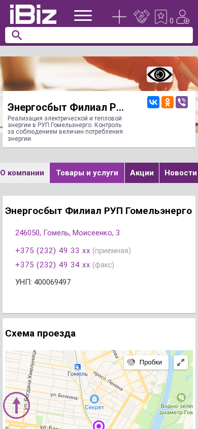 | Название / Заголовок | Энергосбыт Филиал РУП Гомельэнерго - Реализация электрической и тепловой энергии в РУП Гомельэнерго. Контроль за соблюдением величин потребления энергии.. 246050, Гомель, , Моисеенко, 3 |