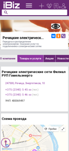 Название / ЗаголовокРечицкие электрические сети Филиал РУП Гомельэнерго - Передача и распределение электроэнергии. Оказание услуг по подключению к электрическим сетям.. 247500, Речица, , Энергетиков, 10
