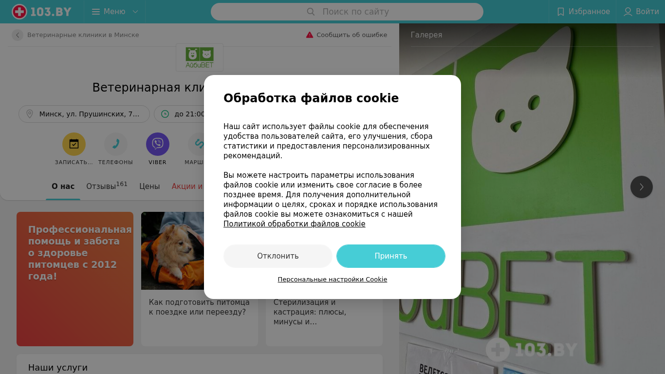 | SEO-описание | Ветеринарная клиника АйбиВЕТ Минск ул. Прушинских 74 – телефоны, время работы, отзывы и схема проезда в каталоге медицинского портала 103.by. |