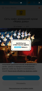 | AI-анализ | This online resource is a website for a chain of home cooking cafes named "Мама дома" in Minsk, Belarus. The site offers menu information with prices and photos, customer reviews, the address on a map, and online table reservation through Relax.by. Keywords associated with the site include "кафе", "домашней кухни", "мама дома", and "минск". The site is part of a larger platform with various search and event features, including wedding planning, a favorites list, and an option to report errors. The cafe is located in the MOMO shopping center at Partizansky Prospect 150a in Minsk and is open from 09:00 to 22:00 for food delivery. The site includes a map, phone numbers, and information on nearby attractions such as Mazy-Dak |