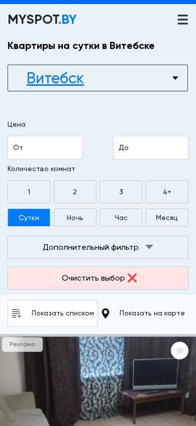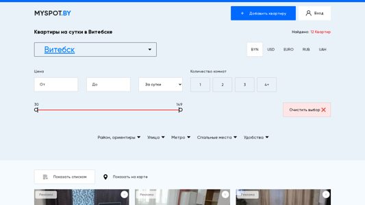 This website is a rental platform for apartments in the city of Vitebsk, Belarus. It offers both short-term and long-term rentals, with options for daily, nightly, hourly, and monthly stays. Users can browse listings with photos, contact information, prices, and descriptions. The website also allows users to filter results by number of rooms, price range, and location, as well as additional features such as proximity to metro stations, availability of parking, and pet-friendliness. Listings include contact information for the property owners or managers, allowing users to book directly. The domain name is vitebsk.myspot.by.