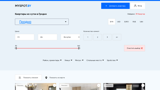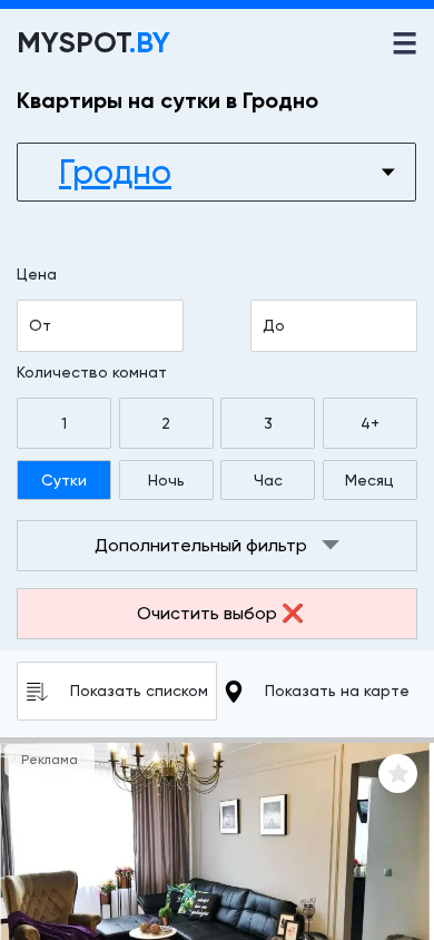 | SEO-описание | Снять квартиру на сутки в Гродно на сайте ★ MySpot ★. Посуточная аренда квартир с фото, контактами, ценами и описанием на: ✓ сутки ✓ ночь ✓ час ✓ месяц. |