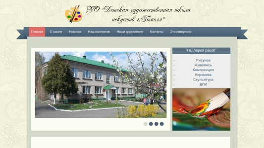 | AI-анализ | --- This website is for the Children's Art School of Arts in the city of Gomel. The title, keywords, and top_words indicate that it is a school focused on arts education for children. The homepage includes sections for news, faculty, achievements, contacts, and a gallery of student work in various art forms such as drawing, painting, composition, ceramics, and sculpture. The school had several students receive awards at the "Kotovasia" competition in Russia in early 2020. The academic year is organized into four quarters, each with different durations, and there are scheduled breaks throughout the year. The website also mentions an international children's drawing competition called "Дружат дети на планете" (Friends of Children on the Planet) which took place on International Children's Day in June 2020 with the theme of "Eco |
