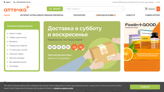 | Название / Заголовок | Интернет-аптека АПТЕЧКА+. Доставка лекарств на дом в Бресте |
