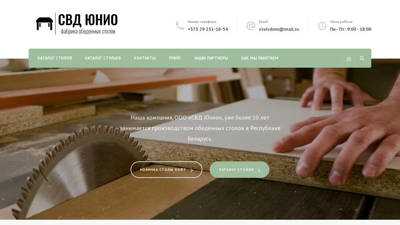 Название / ЗаголовокСВД Юнио - производство обеденных столов в Беларуси.