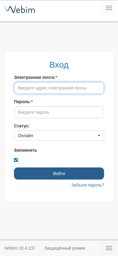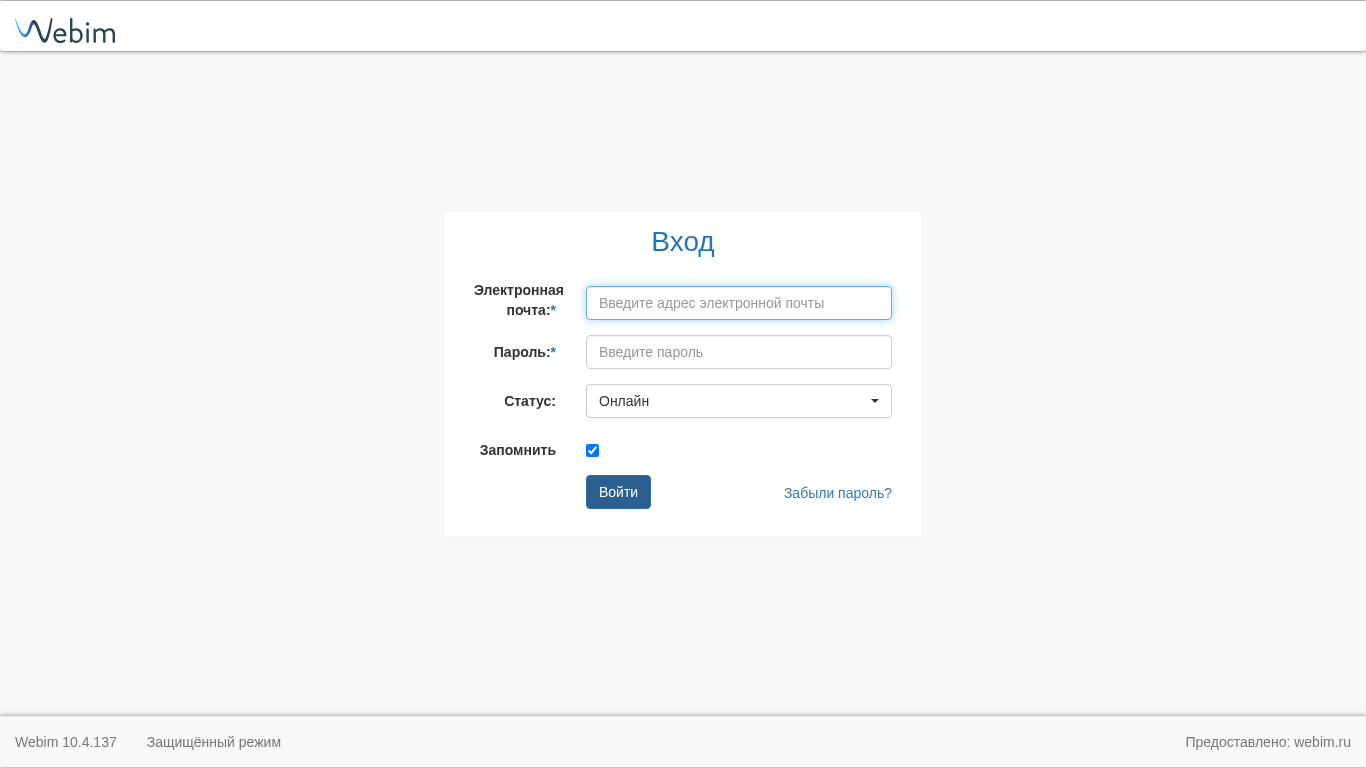 SEO-описаниеВход в панель управления учётной записью сервиса Webim.