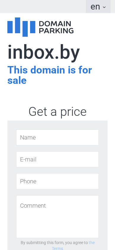 Сайт inbox.by на данный момент является паркованным доменом, предназначенным для продажи. Название домена, inbox.by, является фактическим названием сайта и значительно влияет на успех любого проекта, связанного с ним. Стоимость изменения доменного имени в ходе проекта может быть значительной и сравнима с усилиями по ребрендингу. Поэтому рекомендуется выбрать подходящее имя домена с самого начала и точно позиционировать продукт или услугу. Цена на покупку домена можно получить, подав форму на сайте. DomainParking.ru отвечает за парковку домена.