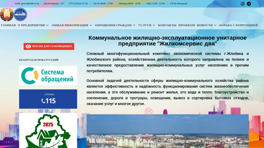 | SEO-описание | Приветствуем на официальном сайте Жилищного коммунально-эксплуатационного унитарного предприятия "Жилкомсервис два" |