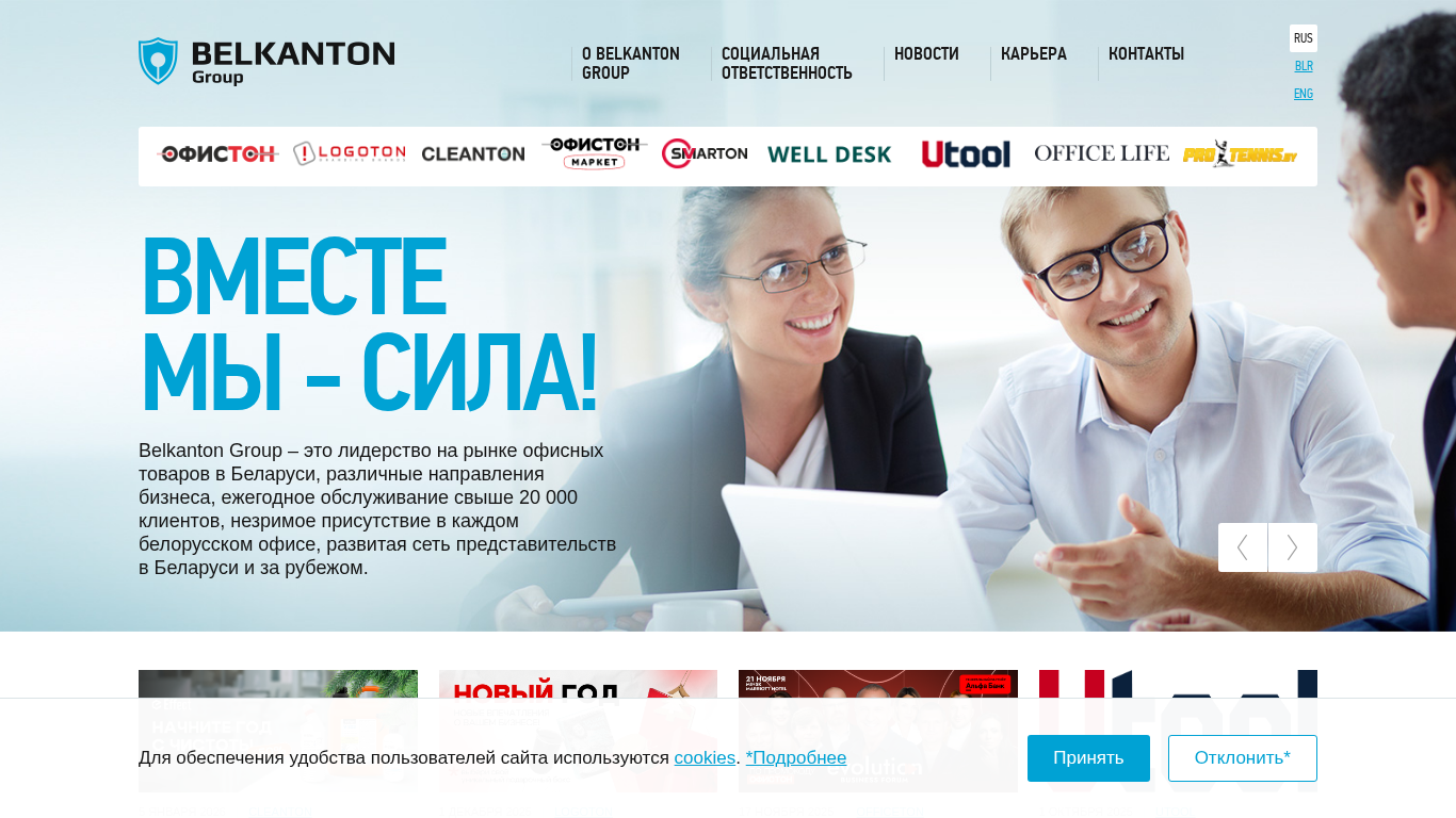| SEO-описание | Belkanton Group – это лидерство на рынке офисных товаров в Беларуси, различные направления бизнеса, ежегодное обслуживание свыше 10 000 клиентов, незримое присутствие в каждом белорусском офисе, развитая сеть представительств в Беларуси и за рубежом. |